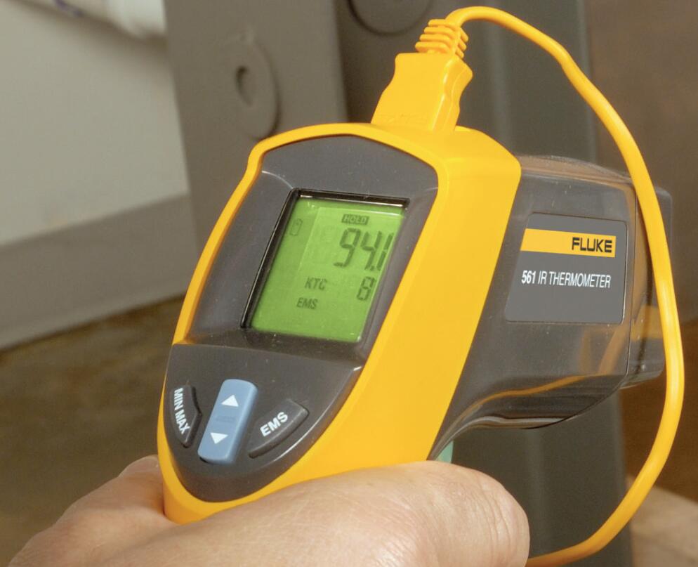 為您的工具箱增加新的亮點。Fluke 561紅外線與接觸式測溫儀集合了工業(yè)、電力、暖通空調(diào)多種行業(yè)技術(shù)人員需要的溫度測量功能,兼具紅外線和接觸式兩種測溫方式,一件可頂多件使用。它快捷、高效、容易使用,可為您節(jié)省寶貴的時間和精力。同時,您還可以自身需要靈活的選擇接觸式測試還是紅外線測溫。該紅外線測溫儀能夠在頃刻間完成對發(fā)熱、運動、帶電、難以接近物體的測量,可用來檢查電機、絕緣、斷路器、輻射熱、管道、連接點腐蝕、線路故障,而且,不用梯子就能直接掃描暖通和空調(diào)管路以及其他難以接近的物體。測量管道時,您既可以使用方便的Velcro®管道探頭,也可以利用手中現(xiàn)有的標(biāo)準(zhǔn)K型迷你連接器熱電偶探頭來測量過熱現(xiàn)象或者內(nèi)部溫度。Fluke 561 型紅外測溫儀(以下簡稱測溫儀)可以通過測量目標(biāo)表面所輻射的紅外能量或使用熱電偶探頭接觸來確定表面溫度。測溫儀是專門針對供暖、通風(fēng)和空調(diào)(HVAC)應(yīng)用而設(shè)計。本手冊涵蓋了 Fluke 561 的所有版本型號。注意:日本型號僅指示攝氏度。