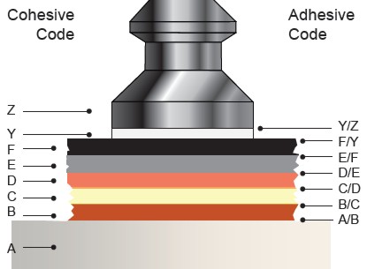 b) 膠粘力脫落:是各層(涂層間)之間接口的失敗,其中一個(gè)拉遠(yuǎn)離其他層。在鍛模上的“涂層”將不會(huì)同測(cè)試面積相同。