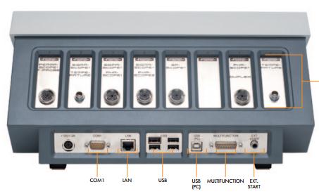 1個(gè)COM1 - RS232接口、1個(gè)LAN網(wǎng)絡(luò)連接 用于鍵盤(pán),鼠標(biāo),打印機(jī)的4x USB連接 1個(gè)用于PC的USB連接 多功能連接器,帶有上限和下限的信號(hào)輸出,外部啟動(dòng) 插座,用于連接例如 用于外部觸發(fā)測(cè)量捕獲的按鈕 通過(guò)AC適配器供電12V / 1.2A |