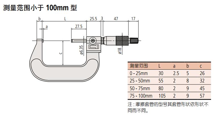 帶有一套基準(zhǔn)桿(不包括0-25mm/0-1" 型)。