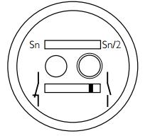 閉 狀 態(tài)。開關(guān) 位 置“Sn/2”表示 將工作距離縮小50%,以適應(yīng)更 小物體的檢測(cè)。 |