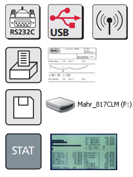 ●通過(guò)RS232或USB接口(帶適配器)將數(shù)據(jù)傳輸至PC, 例如由MarCom軟件將數(shù)據(jù)保存至MS Excel ●通過(guò)USB打印機(jī)打印輸出測(cè)量數(shù)據(jù)及統(tǒng)計(jì)結(jié)果等 ●將測(cè)量數(shù)據(jù)保存至內(nèi)置USB存儲(chǔ)器(連接至PC后將被確 認(rèn)為插入了一個(gè)移動(dòng)磁盤驅(qū)動(dòng)器)或-個(gè)USB加密狗 ●可進(jìn)行大量的統(tǒng)計(jì)評(píng)估工作 |