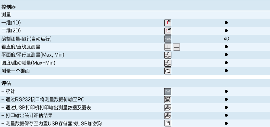 ●全面的1D或2D測(cè)量功能 ●帶模擬顯示的動(dòng)態(tài)測(cè)量功能 ●自動(dòng)運(yùn)行垂直度及直線度測(cè)量功能(與相關(guān)附件配合操作) ●自動(dòng)運(yùn)行測(cè)量項(xiàng)目(編制測(cè)量程序) ●自動(dòng)運(yùn)行連續(xù)測(cè)量及間距測(cè)量功能 |