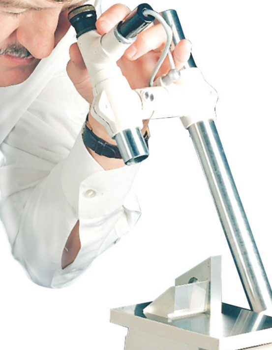 Minidekkor標(biāo)配暗視場分劃板,可在暗背景上形成有照明的十字線圖像。所以它具備從未鍍銀玻璃等低反射率表面以及直徑僅3毫米(0.125英寸)的表面獲得清晰圖像的優(yōu)勢。Minidekkor如果結(jié)合使用顯微鏡物鏡和線性測量裝置,可測量透鏡或曲面鏡面的半徑,例如測量玻璃殼中封裝的電極的間距。這款自準(zhǔn)直儀的標(biāo)配不含固定裝置,所以在訂購時應(yīng)考慮具體的用途,選擇適當(dāng)?shù)墓潭ǜ郊?/span>