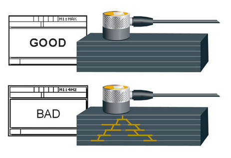 超聲波脈沖從斷裂處反射,產(chǎn)生比校準(zhǔn)點更早到達(dá)的回波。 儀器認(rèn)定這是一個分層。
